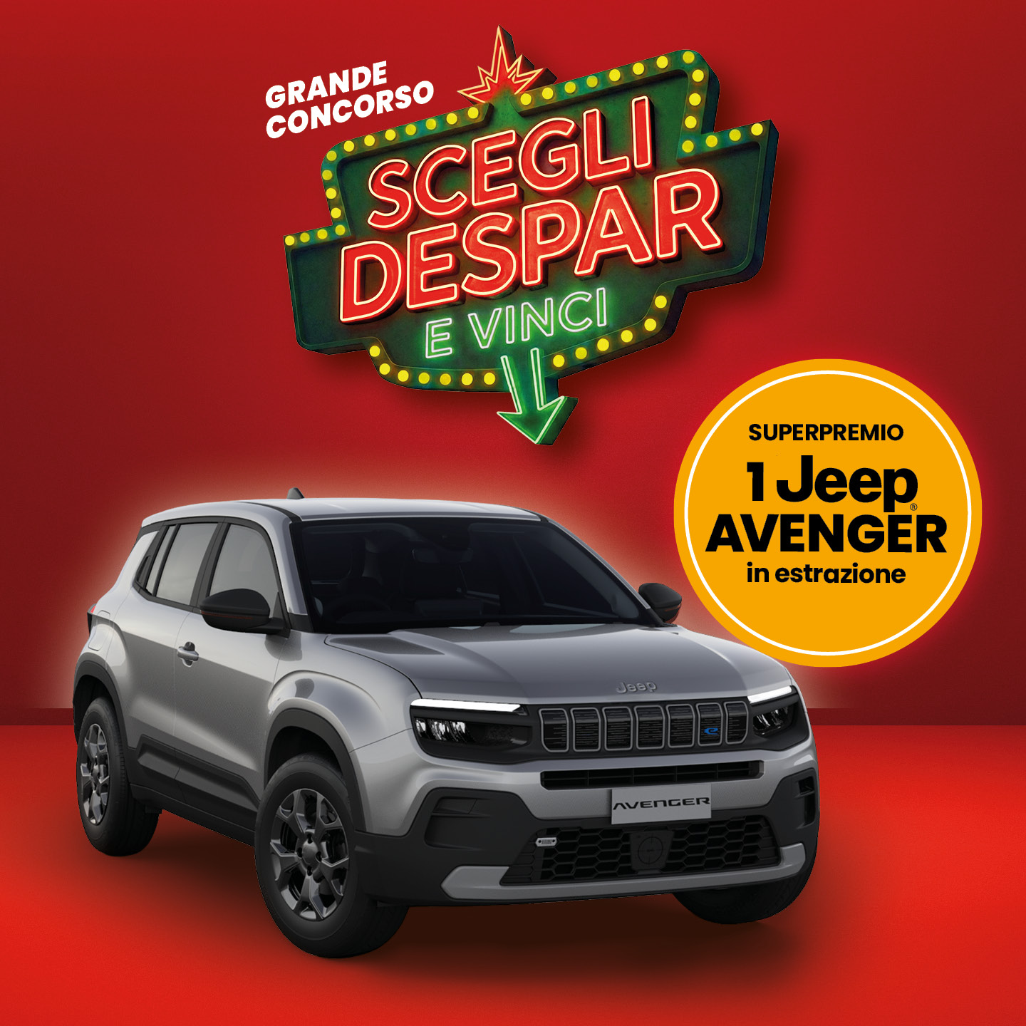 Al termine del concorso, tra tutte le giocate «non vincenti» verrà estratto il fortunato vincitore dell’auto in palio Jeep Avenger E-hybrid entro il 30 aprile 2026.